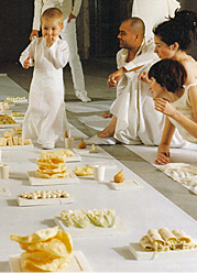 MV: Mostly it depends on the story I need to tell. If the story is about the miles your food has traveled to get to you, the choice of food and where it came from is important first; the taste is next important and then also the color. But if I do a project with the story about color – like the white funeral dinner – the color is more important; then I even made the chef cut all the yellow ends of the soy-sprouts to make them pure white. TONES: What is the most unusual commission you have received? MV: I was just thinking of doing a breastfeeding performance for a milk-exhibition in Paris. I am pregnant right now so this could be one of the few times that one could do something like this in life. But unfortunately they had a budget problem. TONES: Can you describe a particularly memorable or controversial piece?